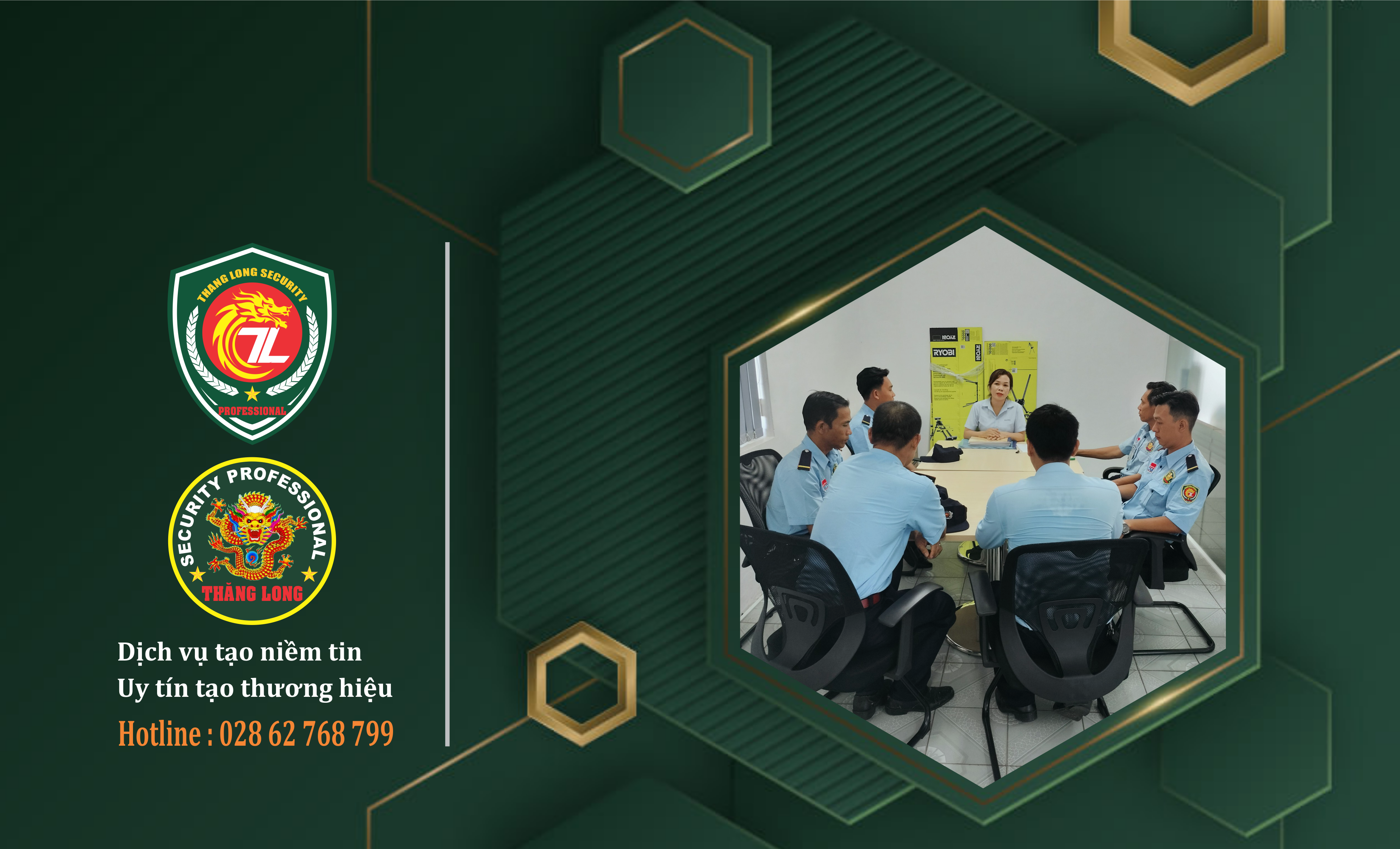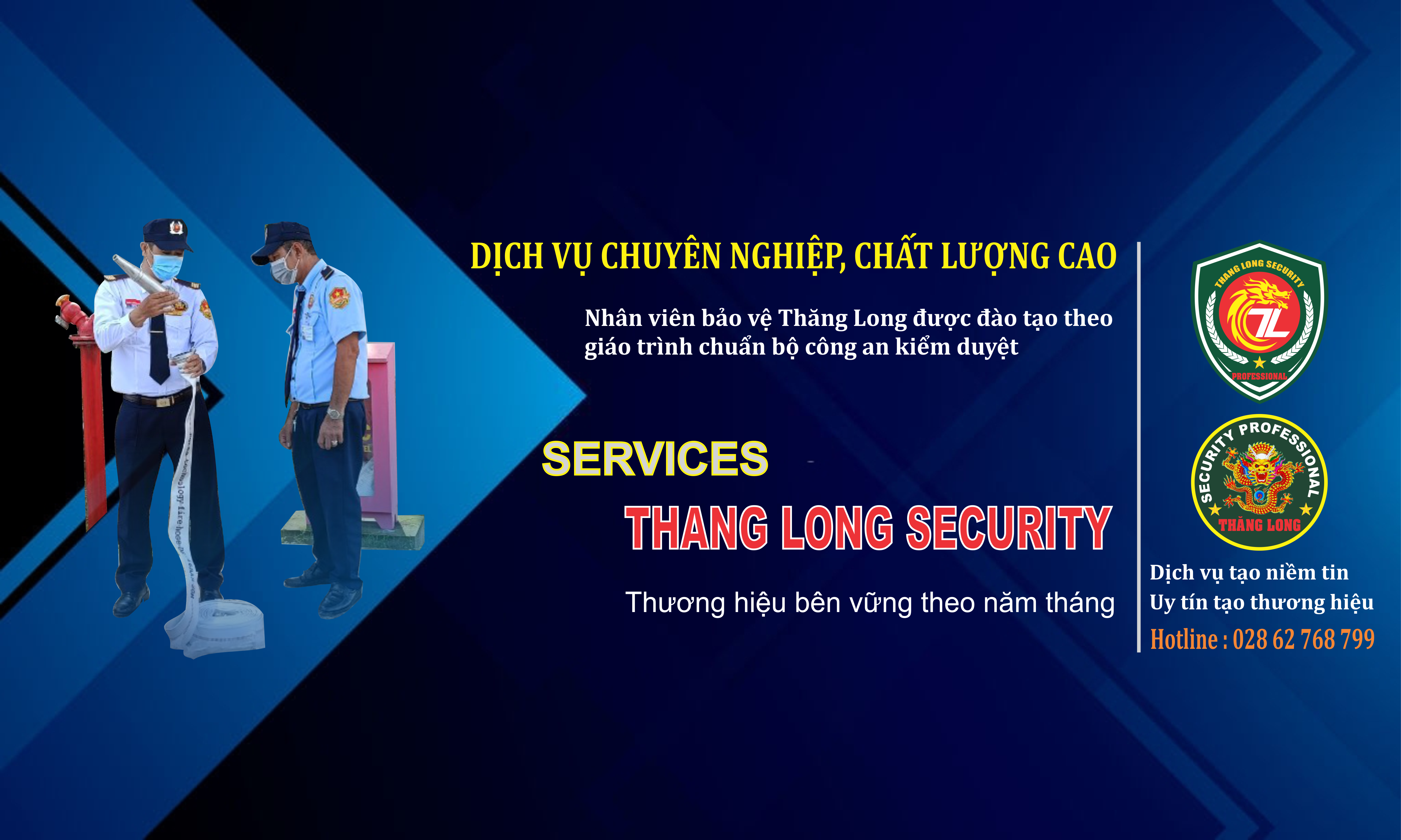 "Với nhiều năm kinh nghiệm ngành an ninh bảo vệ và văn hóa doanh nghiệp: Lấy khách hàng làm trọng tâm. Dịch vụ tạo niềm tin - Uy tín tạo thương hiệu"